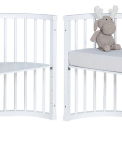 Este berço está muito em alta, ele vem em 4 formas de montagem, primeiro você monta como mini berço (incluso colchão) e depois você monta como berço e a altura do colchão tem 2 regulagens e depois pode montar como mini cama e usar até 5 aninhos. Tem também opção de sofazinho.