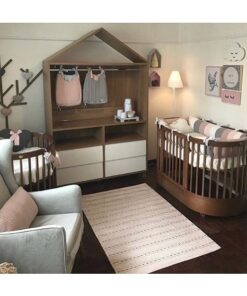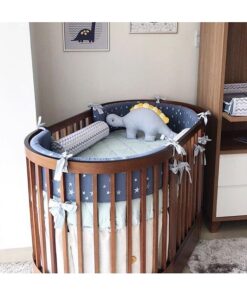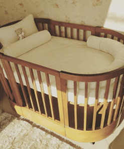 Seu formato faz com que possa usar também no meio do quarto, primeiro você monta ele na opção mini (redondo) e depois você monta na opção berço, ele vira também mini cama onde você utiliza até a criança ter seus 5 aninhos!