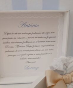 Entraremos em contato para ver o nome dos padrinhos e nome do bebê que vão escritos juntamente com a mensagem!